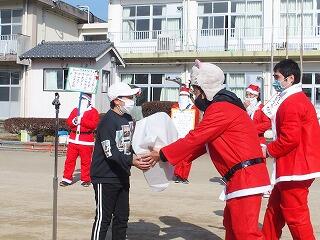 今日は、山之口商工会青年部の皆様が企画していただいた「『コロナに負けるな!』子供たちへのクリスマスプレゼントプロジェクト~子供たちに笑顔と安心を届けます~」が山之口小学校で行われました。