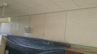 長年使用しているため、油汚れや掲示物の糊やテープ跡が変色して、壁や柱がかなり汚れてきていました。DIYの技をお持ちの先生で、壁面の塗り替えをお願いしたところ、快く引き受けてくださいました。2度塗り仕上げで新品の壁にしていただきました。