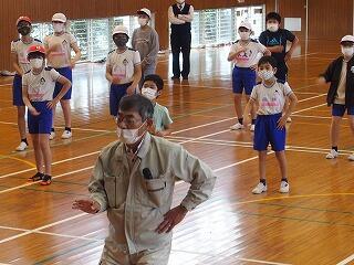 今日は向原奴踊り保存会長の有川様に御指導いただき、5年生が奴踊りの練習をしました。有川様には忙しい中、お仕事の御都合を付けて御指導いただきました。心よりお礼を申し上げます。これから残り3回御指導していただく機会があります。よろしくお願いいたします。