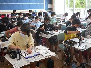 本日、5年生は5・6校時に習字の学習をしました。今年度最初の習字の学習でしたので、書く姿勢や筆の持ち方などを復習してから始めました。