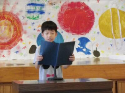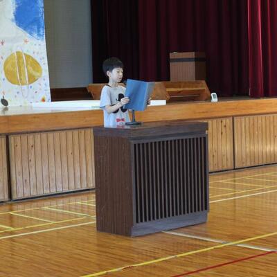 2学期始業式が行われました。6年生代表児童が頑張りたいことを作文発表しました。