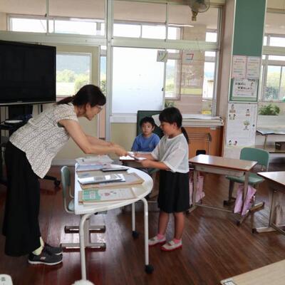 1年生は入学して初めての「あゆみ」をもらいました。「何が書いてあるんだろう?」「お姉ちゃんがもらってきてたのを見たことがあるよ!」ワクワクドキドキしながら1学期の成長を確かめていました。お家の方と1学期をゆっくり振り返ってくださいね。