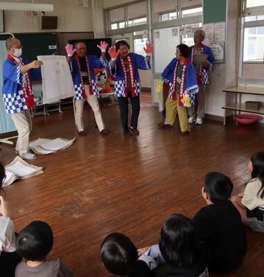 麓小学校では、地域に受け継がれている伝統芸能が二つあります。それが「文弥節人形浄瑠璃」と「六十田剣舞」です。