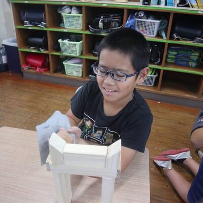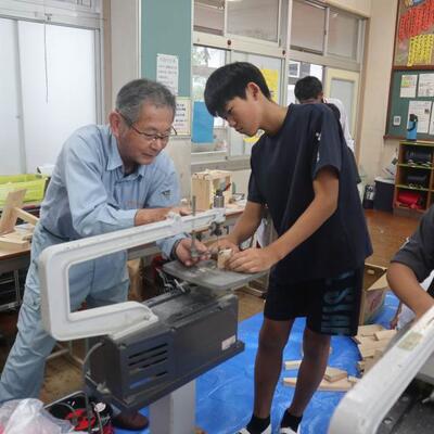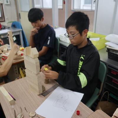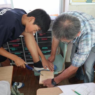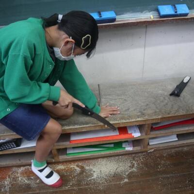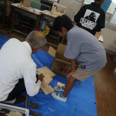 地域の方をゲストティーチャーに迎えての木工作品づくり2回目です。1回目は、地域の方の糸のこぎりの使い方を見て学ぶ時間でしたが、今回は子どもたちも積極的に糸のこぎりを使用しました。また、地域の方に自分からすすんでたずねて、作り方を教えていただく場面もたくさんありました。作品も形になってきています。あと1回、地域の方と一緒に行い、作品を完成させる予定です。