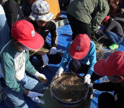 今回も地域の方が13名も応援に来てくださり、全校児童と全職員で力を合わせて手作業で行いました。