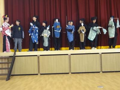 昨年度から練習している6年生が率先して進行や練習に取り組んでいました。また、5年生も負けじと人形の持ち方や太夫の台詞や歌の練習に一生懸命に取り組む姿がありました。