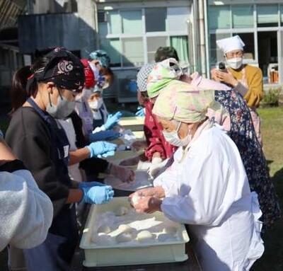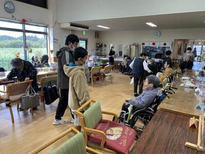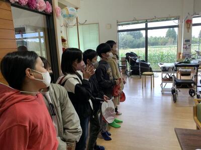少し緊張気味の子どもたちでしたが、メッセージカードともち米5㎏を手渡すと、利用者の皆さんがとても喜んでくださいました。