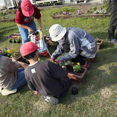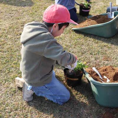 毎年恒例の一人5鉢活動を行いました。卒業式、入学式をお花で祝うために、子どもたちが育てていきます。今年はそれに加えて、創宮株式会社様による花植え活動も行われました。子どもたちと花植えボランティアの皆様、創宮の職員の方々とたくさんの花を植えることができました。子どもたちは、これから、3月に向けて、大事に大事にお花の世話をしてくれることでしょう。6年生が「最後の花植え活動となり、貴重な経験をさせてもらいました。たくさんの花を咲かせて、卒業式を迎えたいです。」と話をしてくれました。花植えボランティアの皆様には、植える手伝いや植えたプランターを一緒に運んでいただく等の御協力をいただきました。また、創宮様には、苗、土、プランターと子どもたちが活動しやすくなるよう、たくさんの準備をしていただきました。愛情をもって育てていきたいと思います。