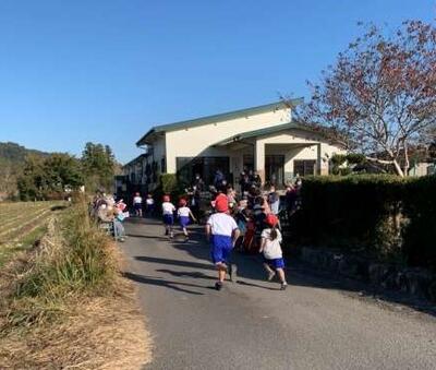 持久走大会が行われました。風もなく晴天の下、自分の目標達成に向けて、子どもたちは頑張りました。応援に来られた方が「持久走できつそうにしている子どもの表情は感動するな。」と話されていました。学校裏手にあるグループホーム城山苑さんは、道路に出て手作りの旗で応援をしてくださりました。参加した全児童がゴールすることができました。記録以上に得られる何かが一人一人にあったことだと思います。たくさんの応援ありがとうございました。