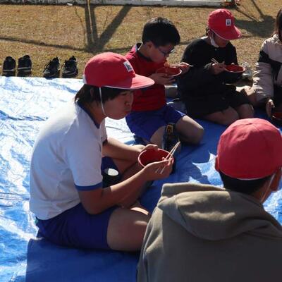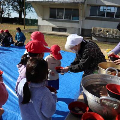 持久走大会の後は、麓ボランティア会の方々による「ぜんざいふるまい」がありました。麓っ子米をついてできたお餅も入っています。温かくて、ほど良く甘いぜんざいをいただくと持久走で疲れた身体に元気が戻ります。今年は、地域・保護者の方も一緒にいただきました。美味しすぎて、4杯も!おかわりした児童もいます。みんなで、「美味しいね~」とぜんざいを食べたことは、子どもたちにとっても一生の思い出となるでしょう。麓ボランティア会の皆様、今年もありがとうございました。