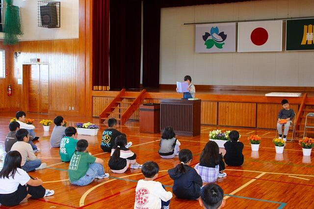 保護者や地域の方々に囲まれながら、元気な返事や立派な態度で、厳かな式となりました。