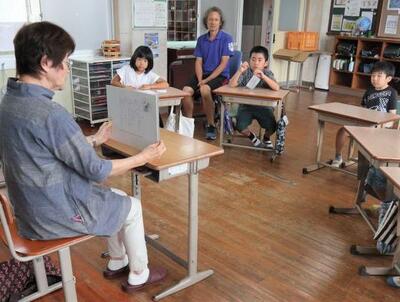 1・2年生の図工の様子です。色とりどりの画用紙を切ったり貼ったりしながら、「パクパクさん」を作りました。みんなでワイワイと楽しそうな様子です。このパクパクさんは、これから、朝の挨拶に参加するそうです。笑顔のあいさつができそうですね。