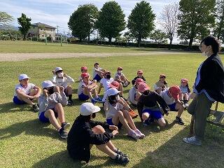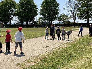 1年生は、4時間授業で早めに帰るので2年生以上の全員でドッチボールをしました。