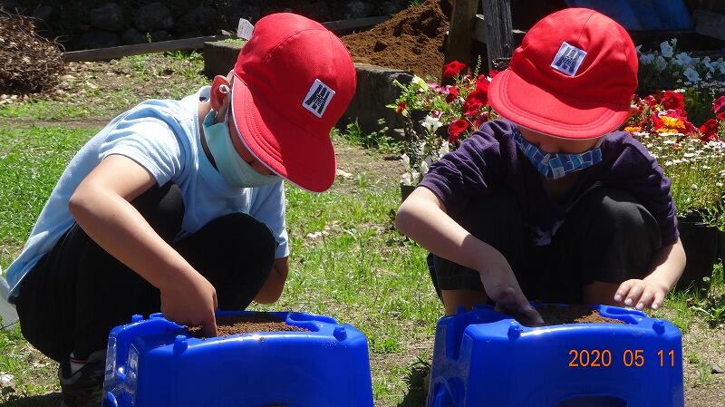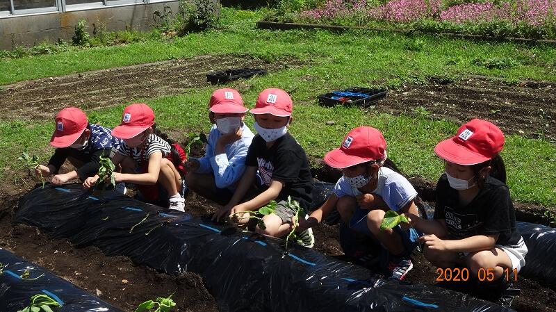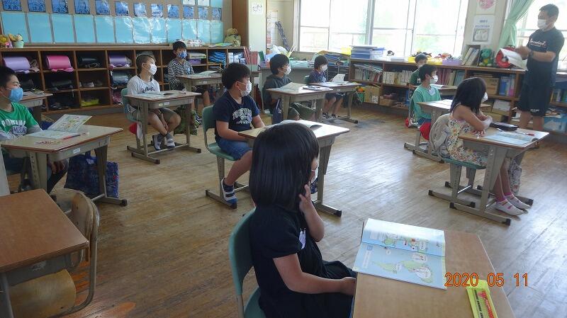 今日は、臨時登校日で子ども達が学校に来ました。各教室とも元気な声が聞こえとても楽しそうでした。1・2年生は、朝顔や芋植え 3・4年生は新しいALTの先生との授業を行っていました。5・6年生は、算数の授業をしっかりと学んでいました。今週と来週は、二日に一日の登校になります。通常の学校生活が送れるようにと願う毎日です。