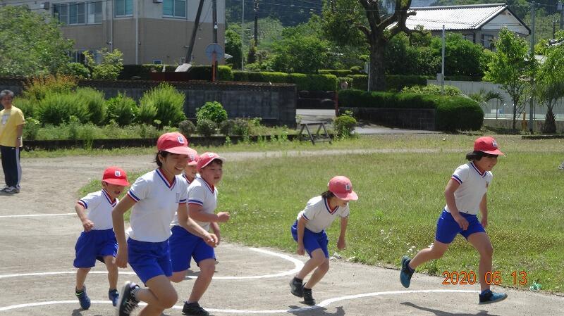 五月晴れになり、子ども達は元気よく運動場を走っています。今年は、年間で20時間程度全校体育の時間を設定しました。全校35名で、集団での運動を取り入れていきます。力一杯走っている子ども達。これが日常の学校生活です。