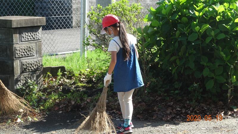 ご存じのように、学校には大きな木が数多く植樹されています。また、運動場は緑一面です。そこで、全校で毎週火曜日の朝に清掃活動を行う事にしました。限られた時間ですのでなかなか一度には終わりませんが、少しずつきれいにしていこうと子ども達は活動しています。