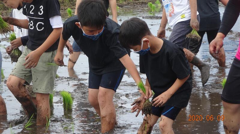 天気が心配されましたが、無事田植えを行う事ができました。まず始めに、田植えの開式を実施しました。昨日練習した成果を発揮ししっかりと行う事ができました。田植えは、1・2年生から始めました。それから、3・4年生最後に5・6年生と行いました。途中、小雨が降り出したので5・6年生が残り全てをを植えてくれました。予定通り田植えが出来て本当に良かったです。