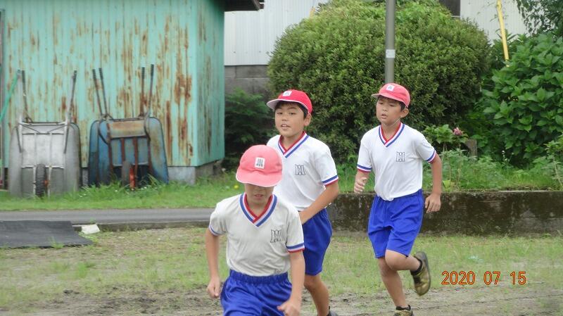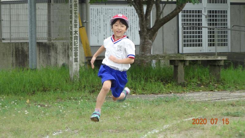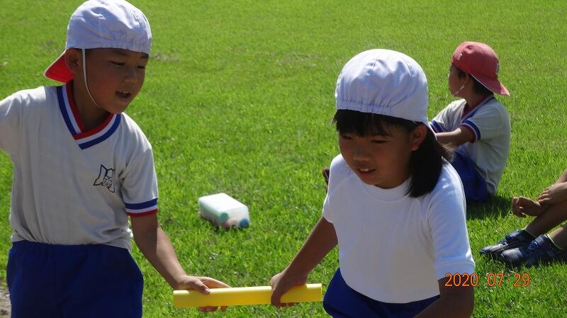 梅雨明けしたら夏本番。今日は、熱中症に気をつけながらの運動場での体育でした。運動会に向けて、リレーの練習を行いました。追い越したり追い越されたり、一人一人が一生懸命に走っていました。
