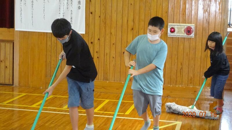 全校児童が少ない事もあり、清掃場所は一人で数カ所の清掃を行っています。場所によっては、二人で一つの教室の清掃をしています。全員、無言でしっかりと清掃を行っているので学校中がきれいです。