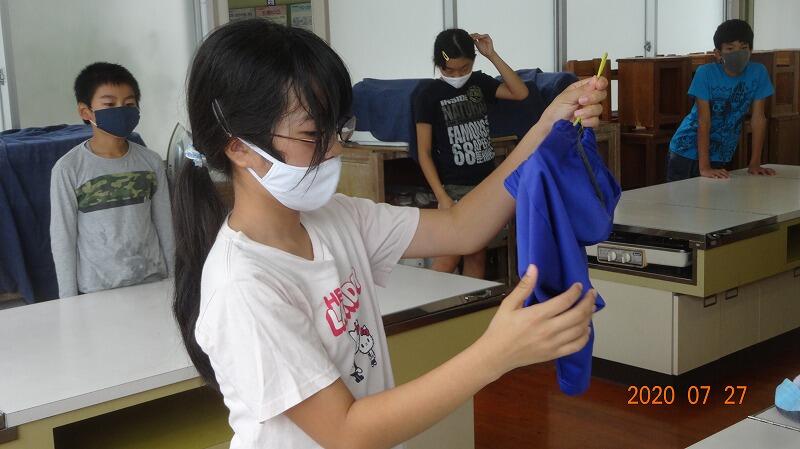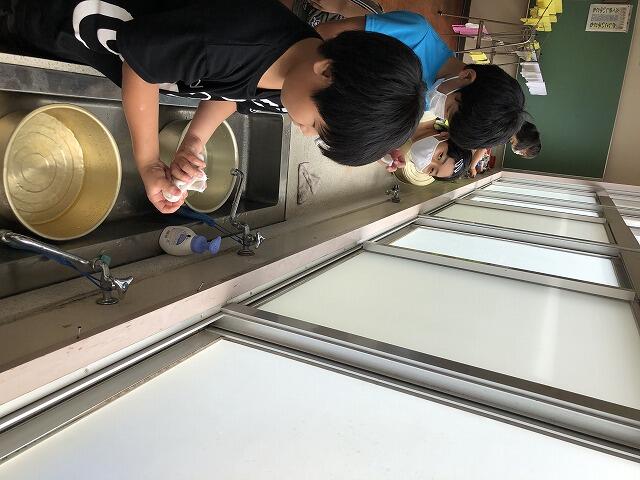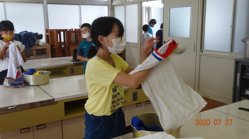 5・6年生が家庭科の時間に、朝のボランティアで使った軍手を手洗いで洗濯しました。