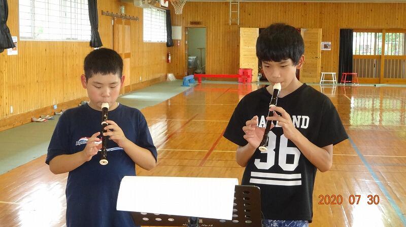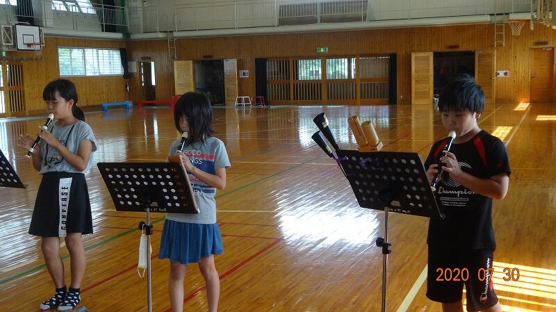 5・6年生が体育館で音楽の授業を行っています。広い体育館ですので、周りを気にせず綺麗な音色を響かせていました。