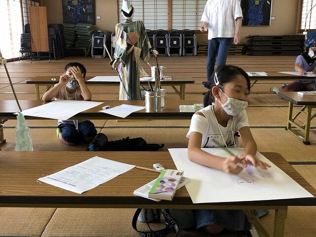 8月7日(金)と8日(土)の2日間、山之口麓文弥節人形浄瑠璃資料館で「夏休み絵画教室」が行われました。いつもお世話になっている公民館長の艮先生が絵画指導を行われていました。子どもたちは、自分で選んだ人形を一生懸命見て描いていました。