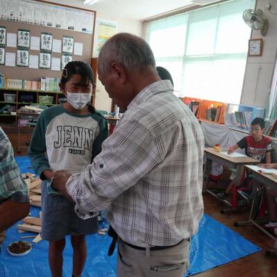 地域の方をゲストティーチャーに迎えての木工作品づくり2回目です。1回目は、地域の方の糸のこぎりの使い方を見て学ぶ時間でしたが、今回は子どもたちも積極的に糸のこぎりを使用しました。また、地域の方に自分からすすんでたずねて、作り方を教えていただく場面もたくさんありました。作品も形になってきています。あと1回、地域の方と一緒に行い、作品を完成させる予定です。