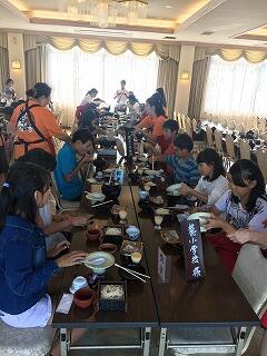 家庭科室で、いろいろな学年のお友達と一緒に食事をしました。