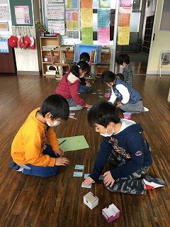 お正月らしく、カルタ遊びを楽しむ2年生です。