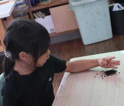 3,4年生は読書感想画を描いていました。5年生は算数の解き方を友達に分かりやすく説明しようと取り組んでいます。6年生は11月の修学旅行について説明を聞いていました。2年生は生活科で1年生に動くおもちゃをプレゼントしようと、おもちゃ作りに励んでいます。1年生は春から夏にお世話をしたアサガオの種の採取を行いました。たくさんの種が採れていましたよ。