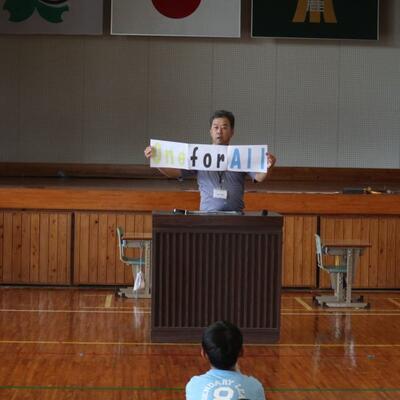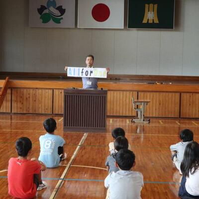 10月の全校集会が行われました。校長先生は「ONE FOR ALL ALL FOR ONE」について、一人一人のよさや頑張りがみんなのために、みんなが一人を大切に チーム麓っ子としての心がまえを話してくださりました。全校が校長先生のお話にぐっとひきこまれ、自分の心に問いかけるよう真剣に話を聴いていました。