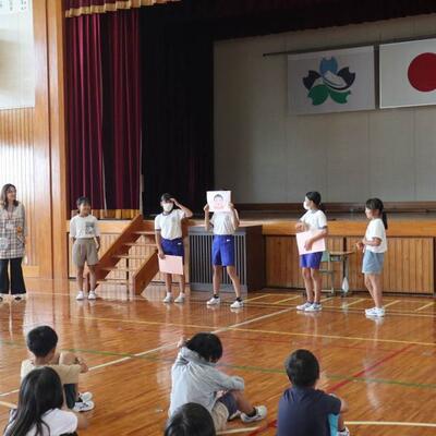 また、保健給食委員会の皆さんが、「目」を大切にしようという目標にちなんだ、日常の学校生活で見られる、「あるある」を劇で紹介してくれました。劇をみながら、自分も思い当たるなという表情の友だちもいましたよ。
