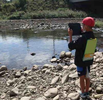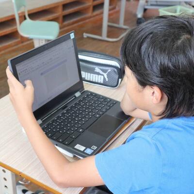5年生は理科の学習「流れる水の働きと土地の変化」を行っています。昨日は、東岳川に行き、実際に川の水の流れと土地の関係を観察しました。PCで撮影した写真をもとに、土地の変化をまとめていきます。