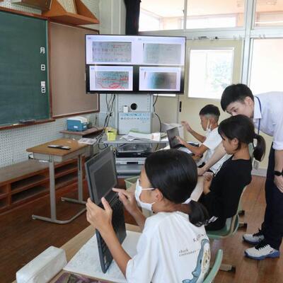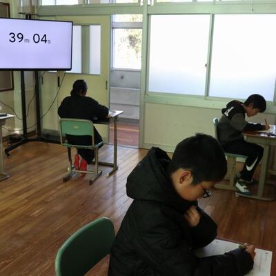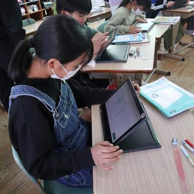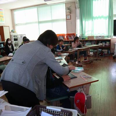 本日の麓小学校のある1場面です。1年生は「とけい」を学習した後、PCで時計の問題を解いています。日常は、デジタル時計が多いため、写真のPC画面のようなアナログ時計の時刻を読む機会が減っています。時計の文字盤を数えたり、短針長針を読んだりしながら慣れていきます。