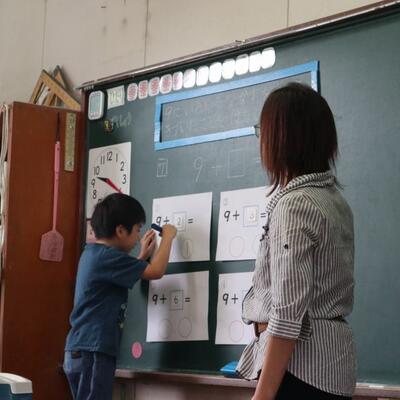 1年生の算数の研究授業でした。繰り上がりの足し算をできるようになっている1年生です。フラッシュカードでどんどん計算をしたり、黒板で説明をしたり、とっても頑張っていました。先生の話を聞くまなざしもしっかりしています。入学して半年、できることがぐんと増えています。