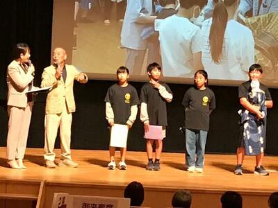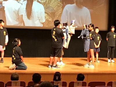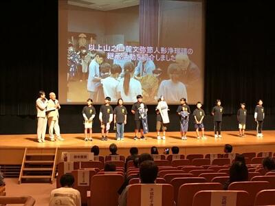 10月15日(日)新富町文化会館で行われました宮崎県子ども会創立50周年記念式典にて、麓小学校の人形浄瑠璃伝承活動の紹介発表をしました。人形浄瑠璃保存会の前田会長とともに舞台に立った5・6年生。お客様の前で、インタビューを受けたり、浄瑠璃の一部分を披露したりしました。保存会の方に支えられて行っている人形浄瑠璃伝承活動について、来場された方々に伝えることができました。大きな舞台に立つ経験をいただきました。宮崎県子ども会の皆様50周年おめでとうございます。そして、本当にありがとうございました。
