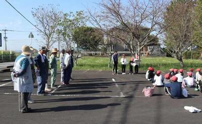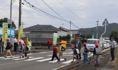 山之口地区あいさつ運動が行われています。卒業生である中学生、地域の方々一緒に学校前の道路に立ってあいさつを行います。登校する児童や道路を通る車にあいさつしました。麓っ子にとっては、様々な方と一緒に活動できる貴重な機会となっています。いつもより多くの人に見守ってもらいながら横断歩道を渡り、新鮮な気持ちの子どもたちです。