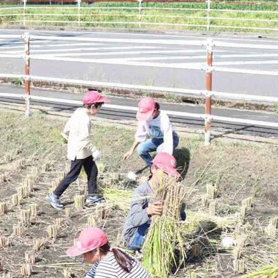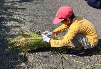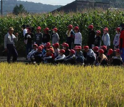 今日は稲刈りでした。8名の学校協力者の皆さんとともに稲刈りをしました。今年は豊作!?のようです。稲刈りが初めての1年生もかまを使って刈りました。刈った稲を干すために、藁をねじって稲を束ねました。みんなで協力して作業をすることができました。ボランティアの皆さまありがとうございました。次は脱穀です。