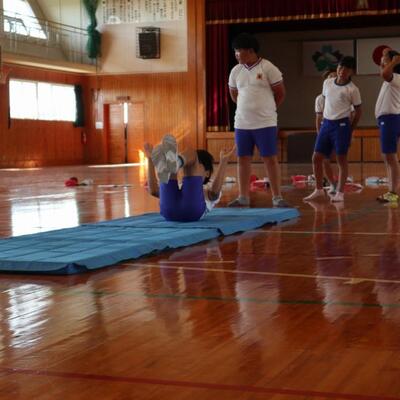 高校の先生にマット運動を教わっています