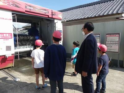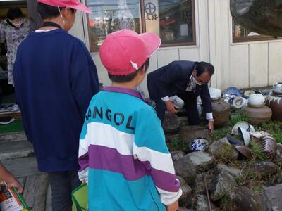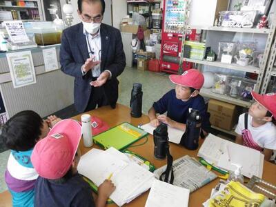 2年生は生活科で町探検を行いました。麓地区にあるガソリンスタンドや古美術のお店をたずねました。麓地区のことがとても詳しい山下さんに説明していただきながら、お店のことや麓地区のことを学びました。帰りには、昔のお金もいただきました。麓地区の魅力をさらに知りました。ありがとうございました。