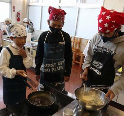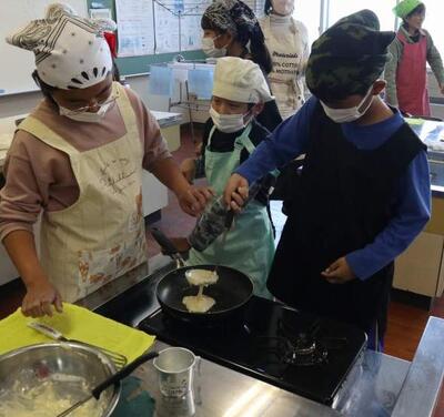 6校時のクラブです。今日は「ホットケーキ作り」です。甘~い香りが教室いっぱいに広がりました。コンロで焼くのは火加減が難しいようでしたが、子どもたちは楽しそうでした。みんなで美味しくいただきました。