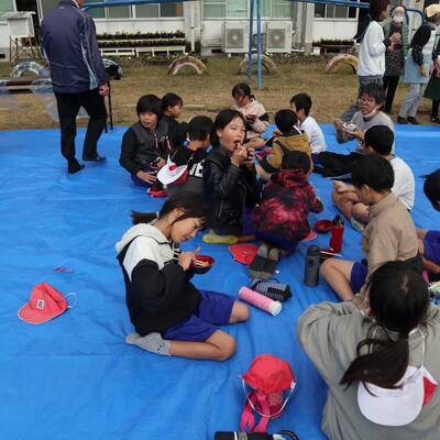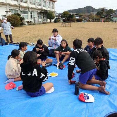 本日は持久走大会でした。朝から緊張していた子どもたちです。本番は、練習よりもとても速いペースですすみました。保護者の皆様、地域の皆様の声援に加え、グループホーム城山苑の皆さんも外に出て、旗を振って応援してくださいました。応援の声に力をもらい、最後まで走りぬいた子どもたちです。持久走が終わった後は、麓ボランティア会の皆様によるぜんざいふるまいがありました。今年は、外で美味しくいただきました。疲れ果てた身体に、ぜんざいと餅の美味しさがしみるようだったそうです。本当にありがとうございました。