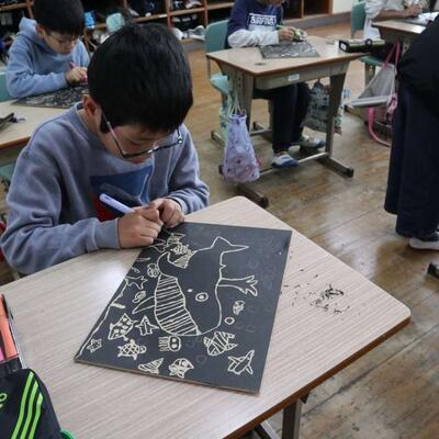 3~6年生は図工で版画に取り組んでいます。彫刻刀を使って。なかなか慣れない彫刻刀ですが、安全に扱っています。間違わないように慎重に慎重に、みんな無言で彫り進めていました。自分の作品を大事にしているのが伝わります。細かな作業ですが、このような経験で器用さも備わりそうです。どのような作品が出来上がるでしょう。インクをおき、刷りあがるのが楽しみです。