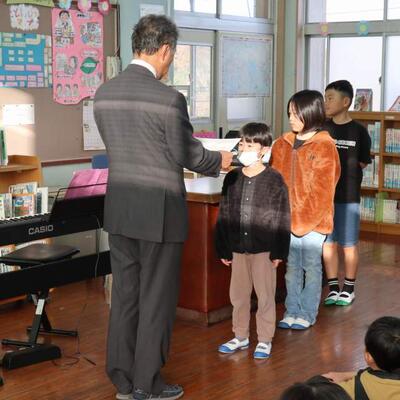 全校児童で迎えることができた終業式。1年生、3年生代表作文は、2学期に頑張ったことへの気持ちが素直な表現で表されていました。その気持ちにとても共感しました。校長先生も大きな行事がたくさんあった2学期の麓っ子の頑張りについてのお話でした。そして、2学期にたくさん本を借りて読んだ多読賞や作品展の表彰も行われました。過ぎてしまうとあっという間ですが、1日1日、様々なことに目標を立て、自分の成長のために取り組んだ32名でした。楽しい冬休みは、元気で安全に過ごしてほしいと担当の先生のお話もありました。3学期はまとめの時期ともいわれます。2学期以上の活躍が見られるでしょう。楽しい冬休みを過ごしてください。