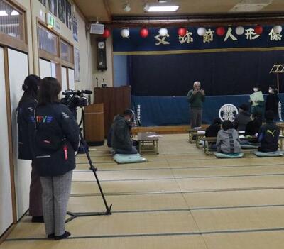 3月17日(日)定期公演に向け、練習も本番に近づけた形になってきています。拍子木や三味線の保存会の方が加わり、子どもたちは黒子頭巾をかぶり。その様子をMRTの方が撮影に来られました。3月13日「わけもんGT」で紹介される予定です。人形浄瑠璃を皆さんに知っていただきたいという思いを胸に、残りわずかな練習を精一杯がんばります。