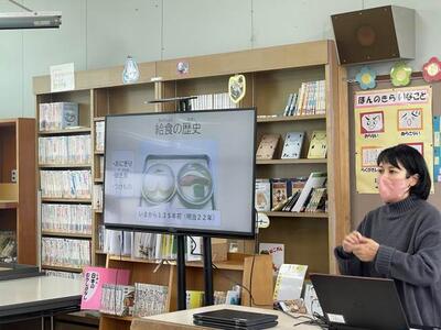 先週「給食感謝集会」がありました。保健・給食委員会の皆さんが計画し、集会を行いました。日本と他国の給食や日本の給食の優れているところなどをプレゼンテーションにまとめ、説明しました。知らなかったことがたくさんあり、みんな興味をもって、その説明を聞いていました。クイズもありましたよ。そして、山之口給食センターの栄養士黒木先生には、給食の歴史についてお話していただきました。子どもたちの健康を考え、いつも献立を立ててくださる黒木先生、食材を準備したり、調理をしたりしてくださる給食センターの調理員さん、お店の方々、本当にありがとうございます。感謝の気持ちを込めたメッセージカードをプレゼントしました。給食を作って下さる方々、これからもどうぞよろしくお願いします。