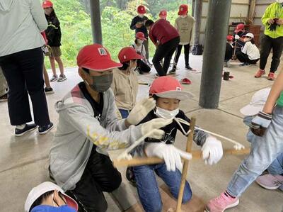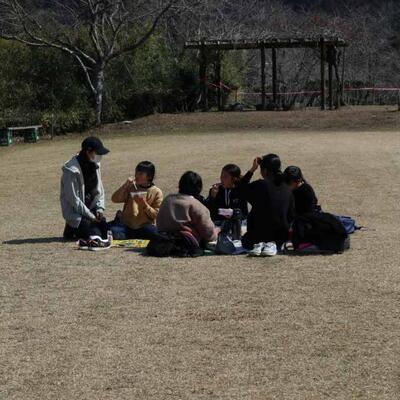 5年生は今日と明日、宿泊学習です。宿泊施設に到着し、レクレーションを行い、昼食を摂った後、「火おこし体験」活動を行っています。うまく火がつくといいですね。山之口小、冨吉小の友達と力を合わせて、頑張れ!この後は、自分たちで夕飯のカレー作りを行う予定です。2日間と短い間ですが、他校の友達と共に生活することで、普段の生活とはひと味違う学びをたくさん得られるでしょう。