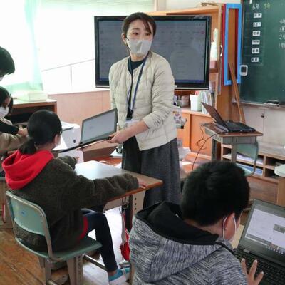これまで子どもたちは、行事や1年間の目標などを「キャリアパスポート」というファイルに記録していました。今後はそのキャリアパスポートをPC(タブレット)に保存します。都城市は『おいろぐ』という名前です。今日は、ICT支援員の先生に、その保存方法を教えていただきながら保存作業を行いました。PCの活用が広がっています。