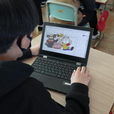 昨日のクラブ活動はプラ板作りでした。思い思いの絵を描いて、トースターで熱すると、プラ板ができます。「どんな絵を描こうかな」「色を塗ってかわいくしよう!」ととても楽しそうでした。先生がカメラをトースターに向けている写真は、お休みをしている児童とオンラインでつないで、クラブ活動の様子を伝えているところです。