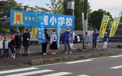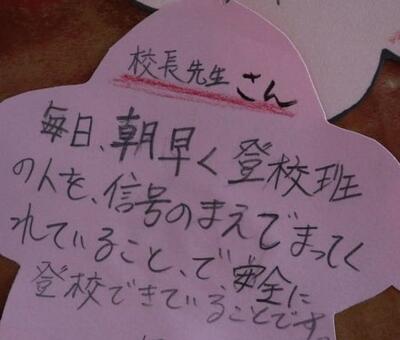 山之口まちづくり協議会より、交通安全旗をいただきました。キャラクターも入っていて、文字も大きくとても鮮やかです。早速、明日の小中合同挨拶運動で使わせていただきます。ありがとうございました。